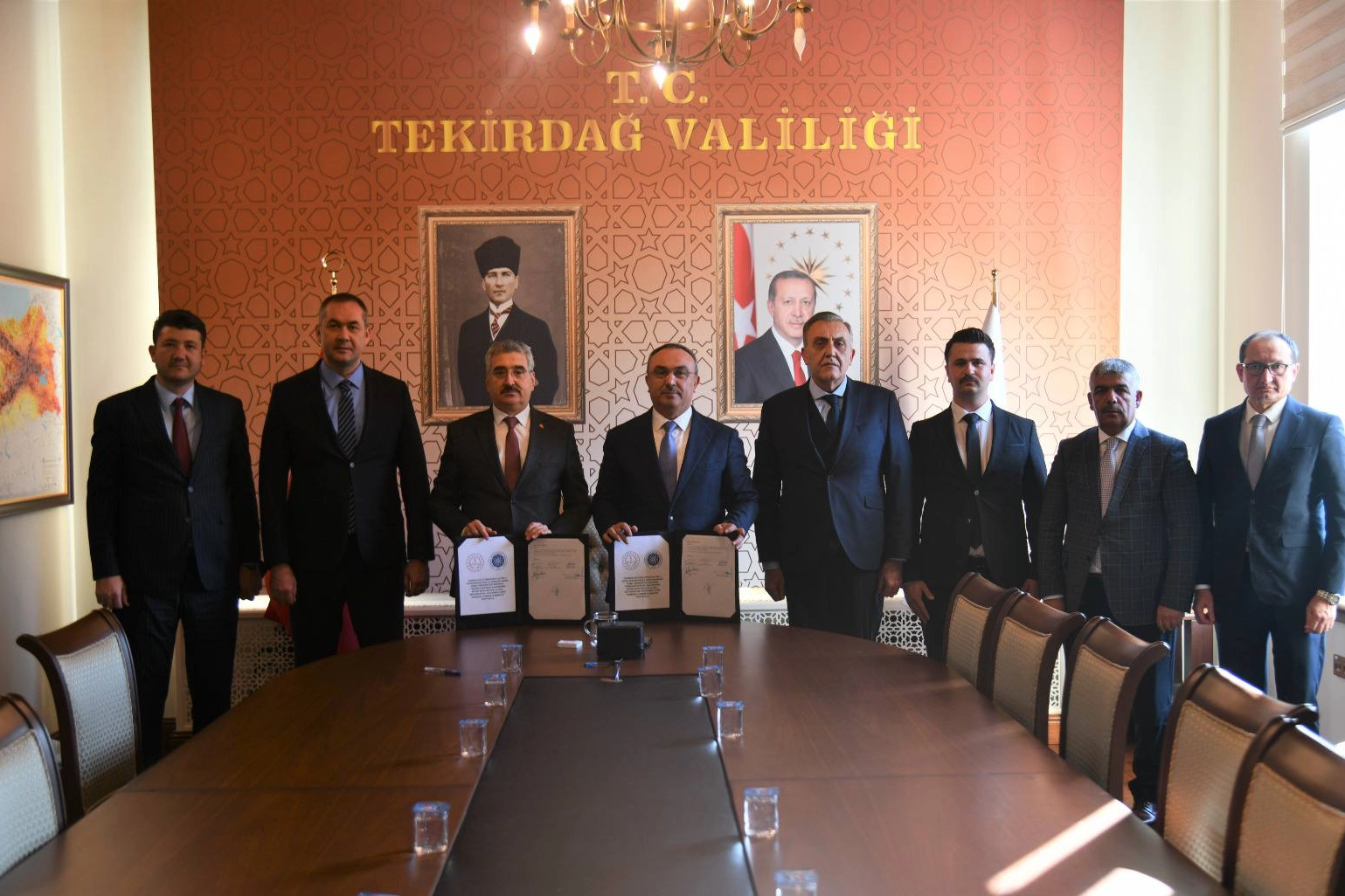 Tekirdağ Süleymanpaşa İlçe Millî Eğitim Müdürlüğü ile Tekirdağ Namık Kemal Üniversitesi işbirliğinde “Tekirdağ Sporunu Kalkındırma Büyük Spor Projesi: Ulusal Entegrasyon” projesi hayata geçiriliyor. Projenin uygulanmasına yönelik işbirliği protokolü, Tekirdağ Valisi Recep Soytürk, Tekirdağ Namık Kemal Üniversitesi Rektörü Prof. Dr. Mümin Şahin ve Süleymanpaşa Kaymakamı Mahmut Nedim Tunçer tarafından Valilik Toplantı Salonu’nda imzalandı.
