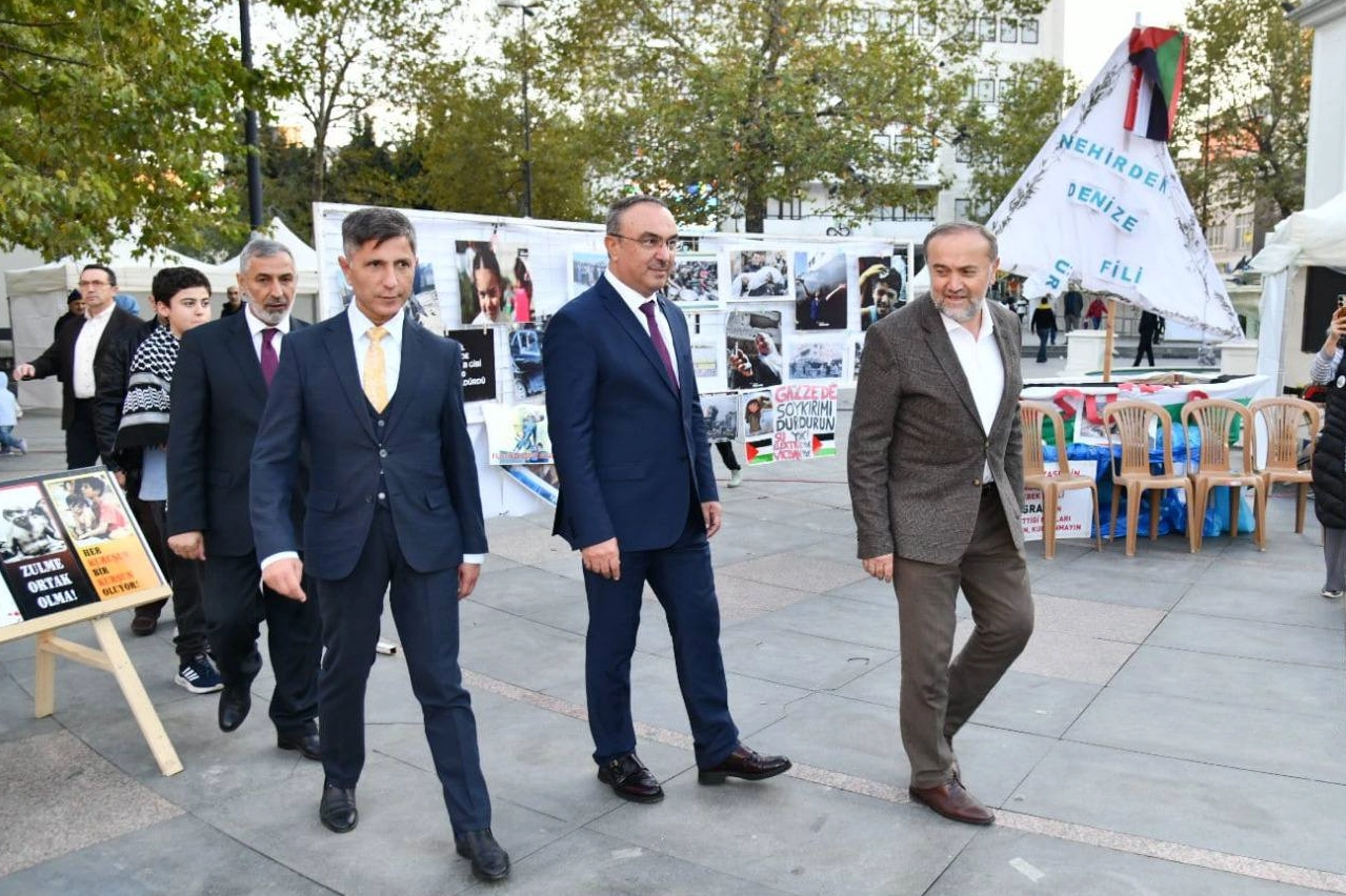 Çorlu Filistin İnisiyatifi öncülüğünde Cumhuriyet Meydanı'nda düzenlenen programa katılan Soytürk, Çorlu Filistin İnisiyatifi Sözcüsü Kurtuluş Ay ile bir süre görüştü.