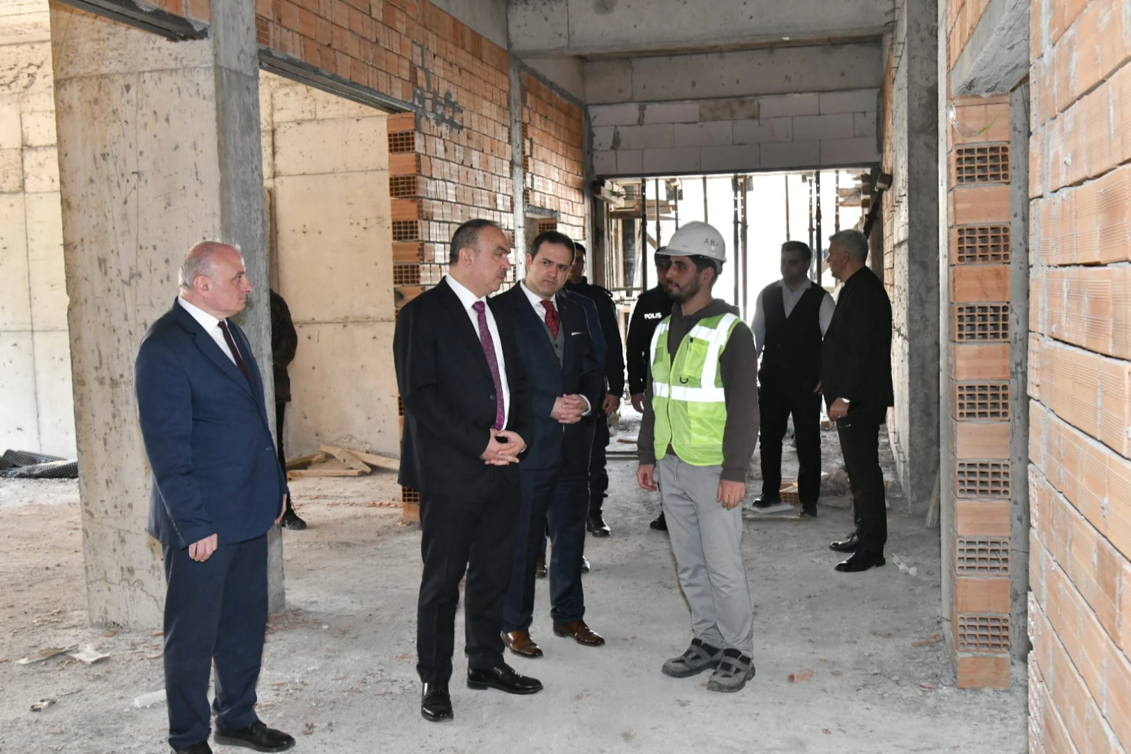 Okulu gezerek incelemelerde bulunan Soytürk, okulun inşaat süreci hakkında yetkililerden bilgi aldı.