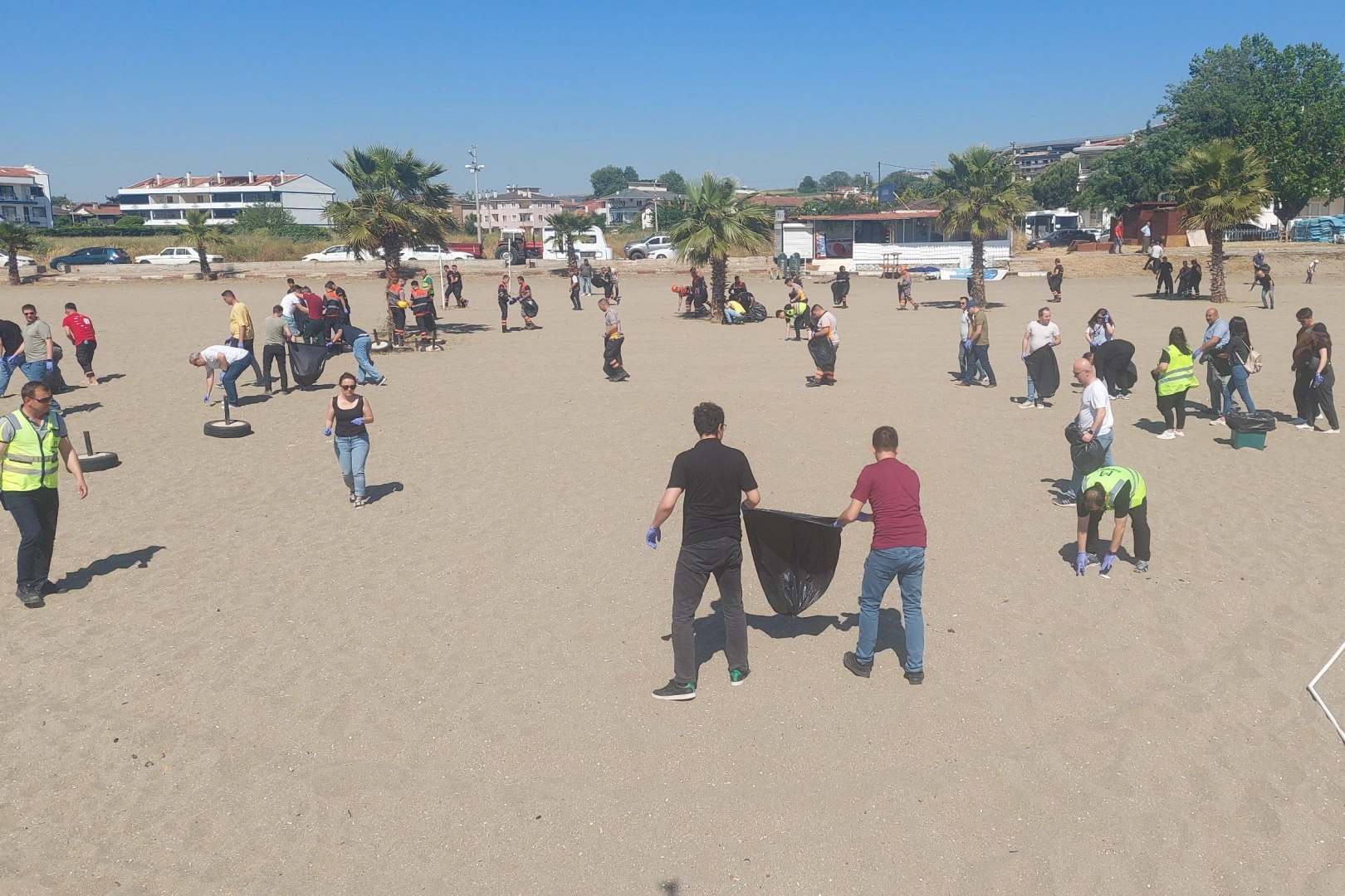 Tekirdağ'da çevre haftası çerçevesinde plajlarda temizlik yapıldı. Bir saatlik temizlikte yaklaşık 200 torba çöp çıktı.