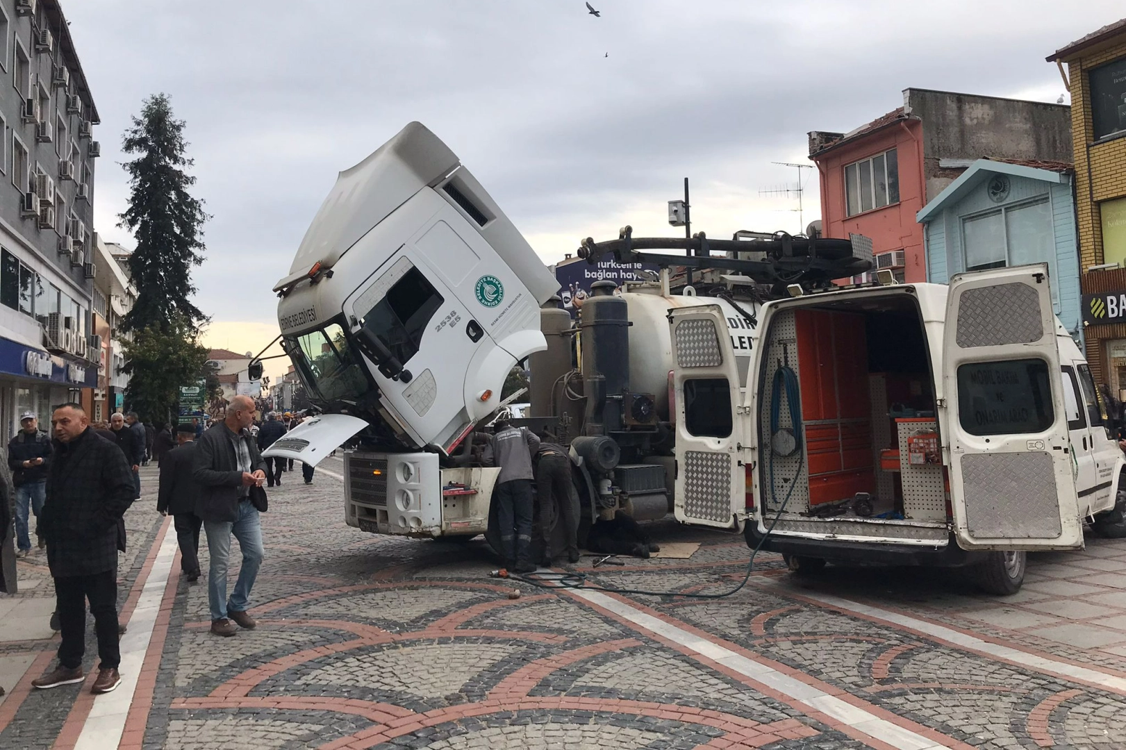 Edirne Belediyesi Su Kanalizasyon Müdürlüğüne ait vidanjör, Saraçlar Caddesi’nde bulunan bir Kırkpınar heykelinin havuzunda temizlik yapmak için geldi. Ancak araç bu sırada arılanarak Saraçlar Caddesi’nin göbeğinde yolda kaldı. Caddeden geçen vatandaşlar Belediyeye ait büyük vidanjörü görünce şaşkınlıklarını gizleyemedi.