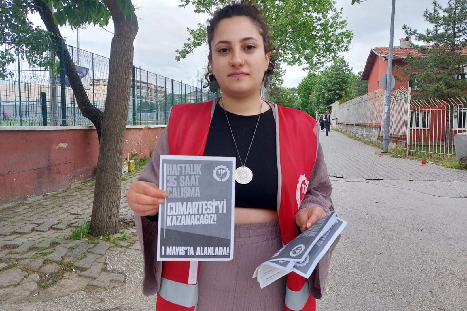 Demir, "Yarın alanlardayız. 1 Mayıs bizim için çok önemli bir gün. Yarın herkesi saat 11.00'de Şükrüpaşa İlkokulu önüne bekliyoruz. Okulun önünden Saraçlar'a doğru yürüyeceğiz. Onun için bugün de burada çağrıda bulunuyoruz. Zaten iki haftadır bunu yapıyoruz. Değişik yerlerde bildiri dağıtıyoruz, çağrıda bulunuyoruz. İnsan toplamaya çalışıyoruz. Haftalık 30-35 saat çalışma sloganıyla geliyoruz. Öyle bir iddiamız, öyle bir isteğimiz var. Cumartesiyi kazanacağız diye de bir sloganımız var" dedi.