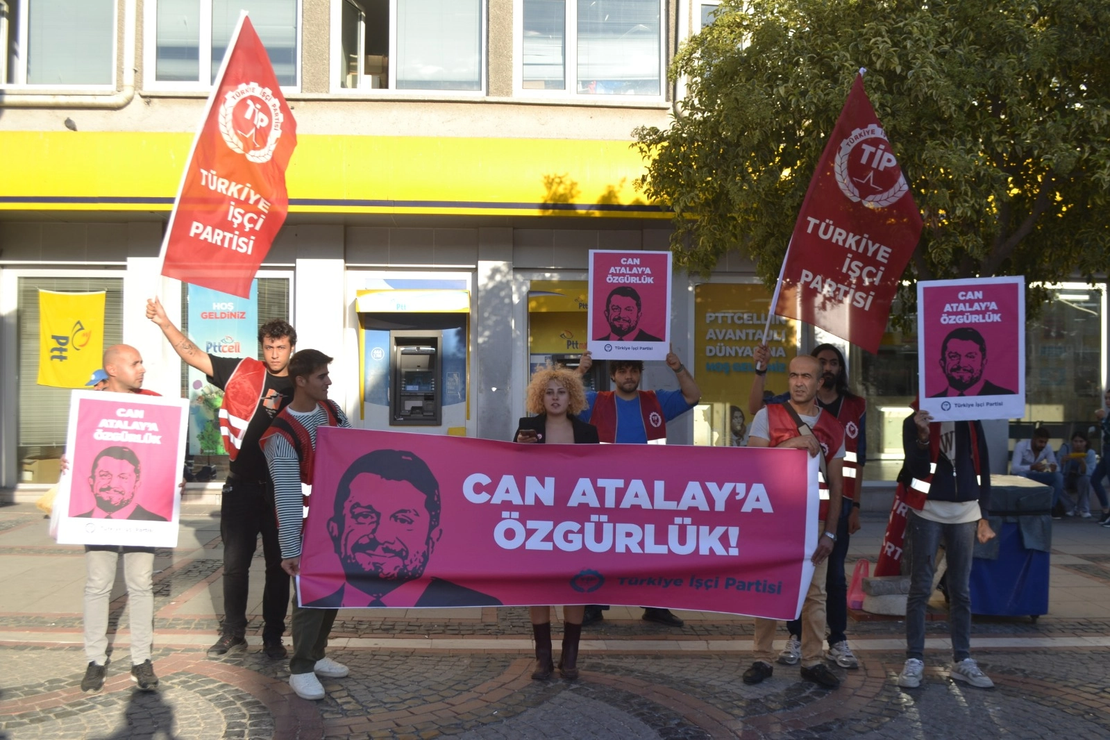 Açıklamadan sonra broşür dağıtan TİP’liler, vatandaşlardan Atalay için destek istediler.