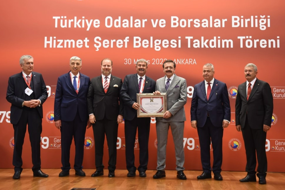 Genel Kurulda yapılan seçimler neticesinde; M. Rifat Hisarcıklıoğlu TOBB Başkanlığı’na 4 yıl süreyle yeniden seçildi. ETB Yönetim Kurulu Başkanı Özay Öztürk; TOBB Ticaret Borsaları Konsey Üyeliği ile Strateji Geliştirme Yüksek Kurulu Üyeliği görevlerine seçildi. Genel Kurul kapsamında Cumhurbaşkanı Recep Tayyip Erdoğan ile Ticaret Bakanı Mehmet Muş’un katılımlarıyla gerçekleştirilen Hizmet Şeref Belgesi takdim töreninde, ETB delegelerinden Yönetim Kurulu Başkanı Özay Öztürk, Yönetim Kurulu Başkan Yardımcısı Eray Karaca, Yönetim Kurulu Üyeleri Recep İriş ve Oğuz Kurban’a 10.Yıl Plaketi takdim edildi.