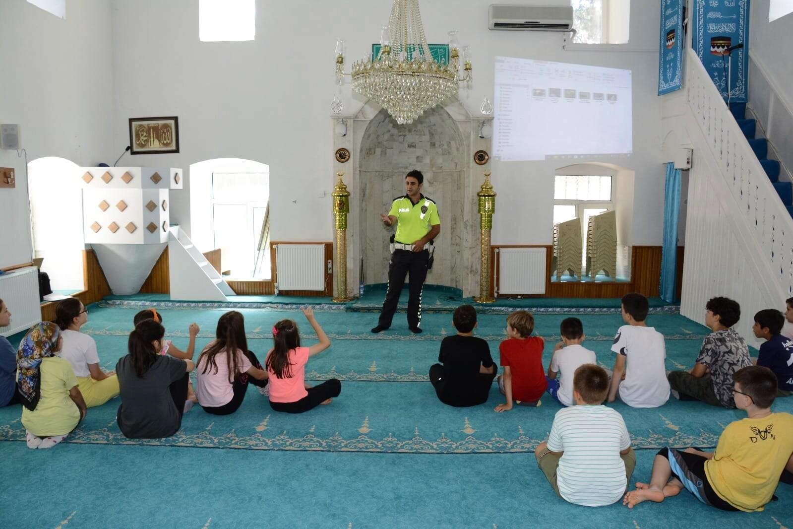 Trafik, Tescil ve Denetleme Şubesi ekipleri, Trafik Güvenliği Eylem Planı kapsamında camilerdeki Kur'an kurslarında gerçekleştirilen eğitimlerde, uyulması gereken kurallar hakkında bilgiler verildi.