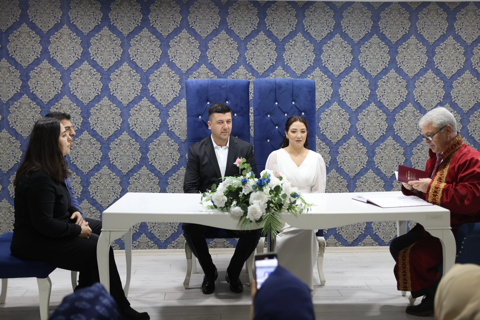 Kırklareli Belediyesi Nikah Salonu'nda düzenlenen törende nikahları kıyılan çiftlerden Sercan ve Meral Meydan çifti de nikah memurunun, "Hastalıkta, sağlıkta, iyi günde, kötü günde eş olmayı kabul ediyor musunuz?" sorusuna "evet" yanıtını verdi.