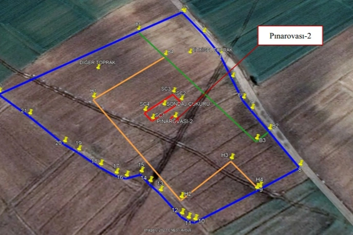 27 bin 339 hektar alana sahip ruhsat sahası içerisinde bulunan Pınarovası-2 kuyusu, parsel sorgulamaya göre tarla vasfında, 1/100.000 çevre düzeni planına göre sanayi, 1/25.000 Ölçekli Çevre Düzeni Planlarına göre ise tarım alanları içerisinde kalıyor.