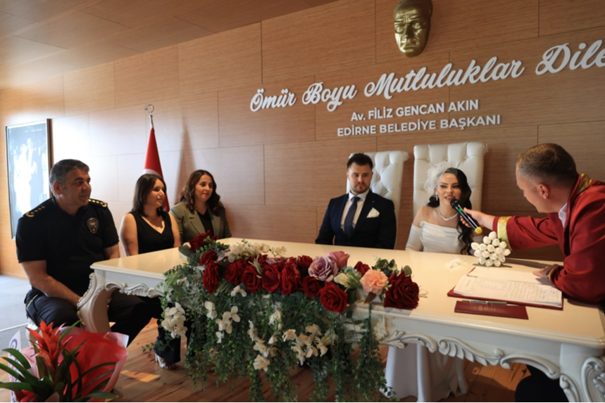 Edirne'de evlenen Edirne Emniyet Müdürlüğünde görevli Komiser Yunus Emre Erçetin ve sağlık teknikeri Burçin Erçetin'in nikah şahitliğini Edirne Emniyet Müdürü Onur Karaburun yaptı.