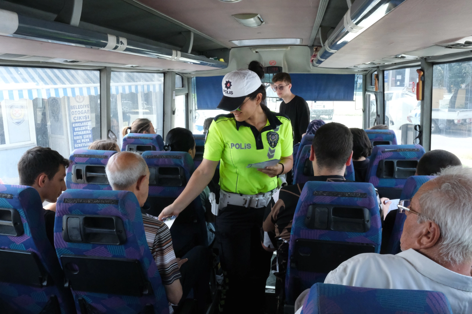 Ekipler, denetimde yolcularında emniyet kemerlerini kontrol edip bilgi verdi.