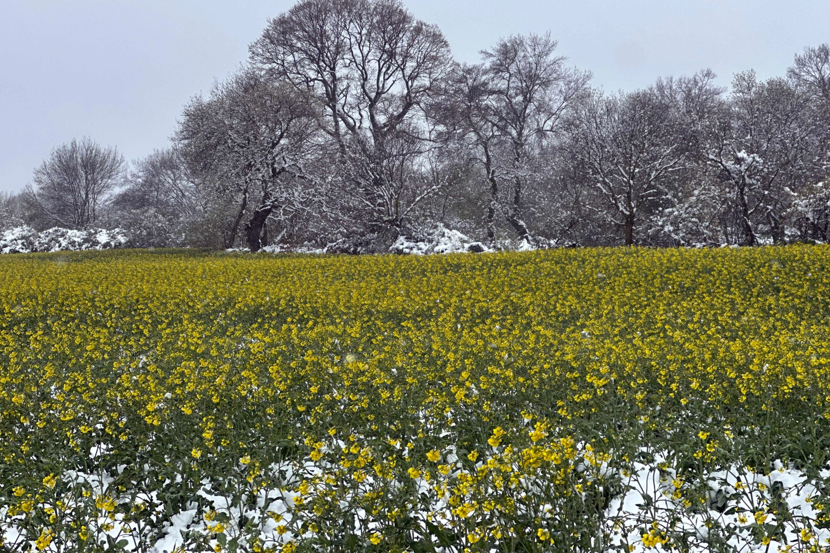 Edirne'nin Keşan ilçesi ile Bulgaristan'a sınır bölgelerinde dün kar yağışı etkili oldu. Meteorolojik verilere göre, en son nisan ayında, 8 Nisan 2003'te kar yağışının etkili olduğu Edirne'de, kar kalınlığı yer yer 8 santimetreyi buldu. Trakya'da ayçiçeğine alternatif olarak ekilen ve çiftçinin 'sarı altın çiçek' olarak adlandırdığı kanola tarlaları ile yeşilin hakim olduğu buğday tarlaları, beyaz örtüyle kaplandı.
