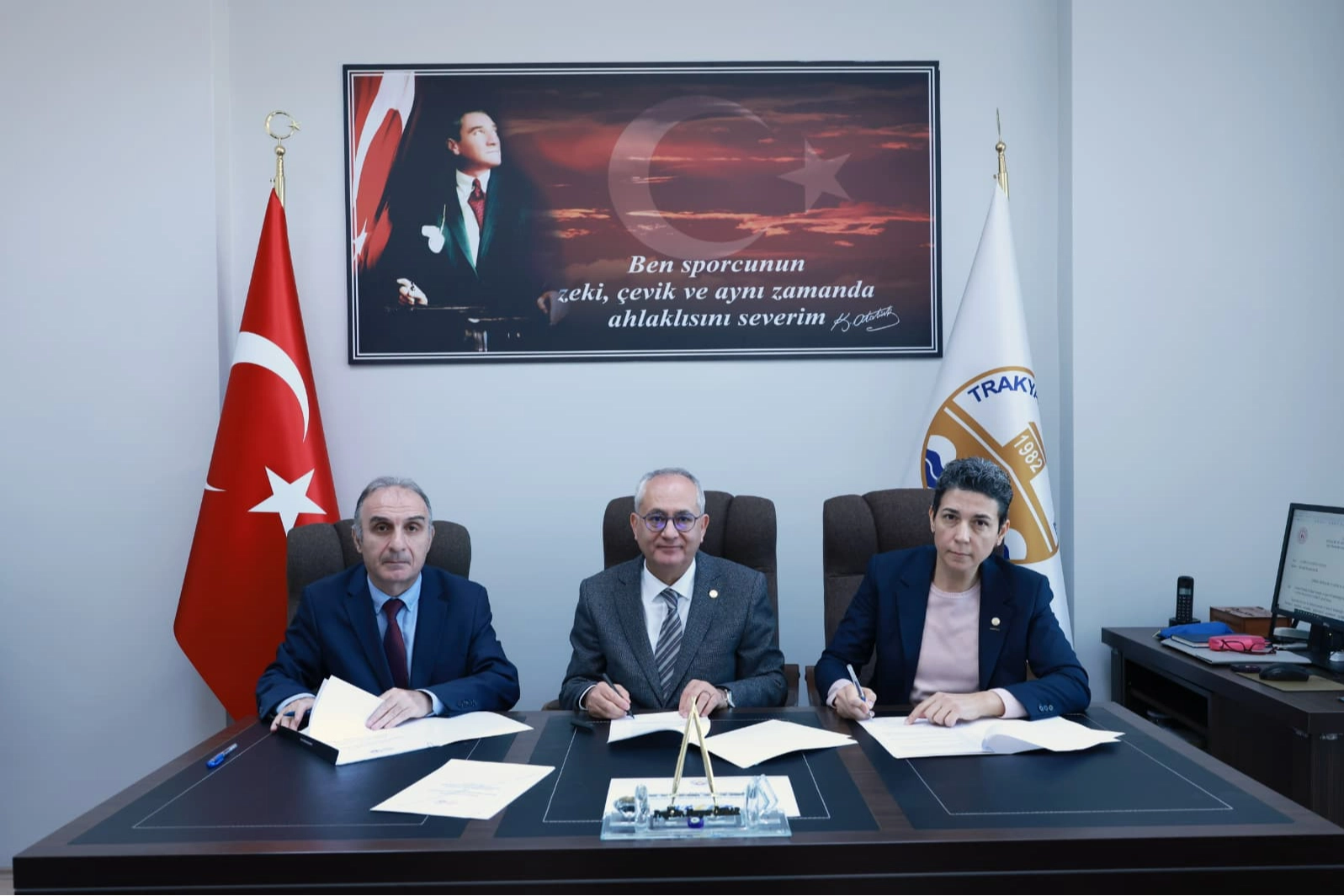 Trakya Üniversitesi Kırkpınar Spor Bilimleri Fakültesi ile Edirne Gençlik ve Spor İl Müdürlüğü arasında öğrencilerin uygulamalı eğitim olanaklarını artırmaya yönelik iş birliği protokolü hayata geçirildi. Kırkpınar Spor Bilimleri Fakültesi Dekanlığı’nda gerçekleştirilen imza törenine Trakya Üniversitesi Rektör Yardımcısı Prof. Dr. Ahmet Muzaffer Demir, Fakülte Dekanı Prof. Dr. Nurper Özbar, Edirne Gençlik ve Spor İl Müdürü Selim Ak, Dekan Yardımcısı Doç. Dr. Cüneyt Taşkın ile Birim Kalite Komisyonu Koordinatörü Dr. Öğr. Üyesi Aykut Aksu katıldı.