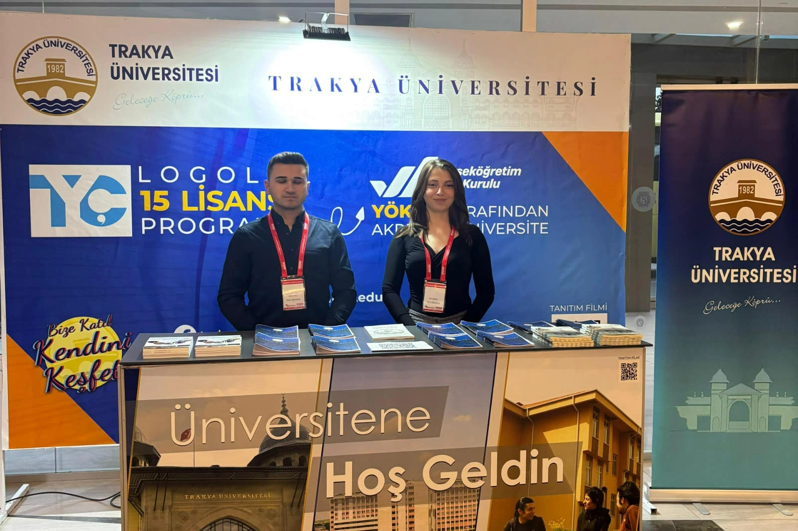 Fuarda, Trakya Üniversitesi’ni temsilen Kurumsal İletişim Koordinatörlüğü’nden Yıldıray Ercan ve Ayça Çınarkök ile Öğrenci İşleri Daire Başkanlığı’ndan Cemil Beyoğlu, üniversite adaylarına kapsamlı bilgiler sundu.