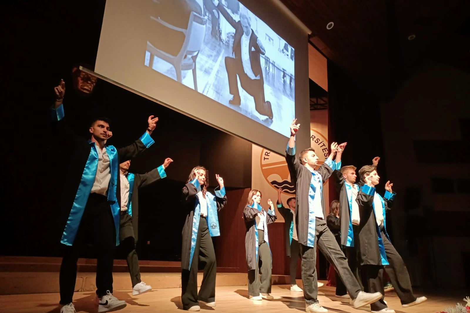 Trakya Üniversitesi ile fakültenin tanıtım filmlerinin gösterildiği törende, mezun olan öğrencilerden oluşturulan ekip, folklor gösterisi sundu. Folklor gösterisi sırasında sahneye kurulan perdeye, Mustafa Kemal Atatürk’ün canlandırıldığı ve zeybek oynadığı video da yansıtıldı. Videoda canlandırılan Atatürk ile birlikte senkronize şekilde dans eden öğrenciler, katılımcılardan yoğun alkış alırken; videonun sonunda yer alan seslendirmede “Adımların adımlarımız, Cumhuriyet kanatlarımız” konuşması duyuldu. Video gösterimi ve folklor gösterisinin sona ermesiyle salondan alkış sesleri yükselirken; katılımcılar duygu dolu anlar yaşadı.