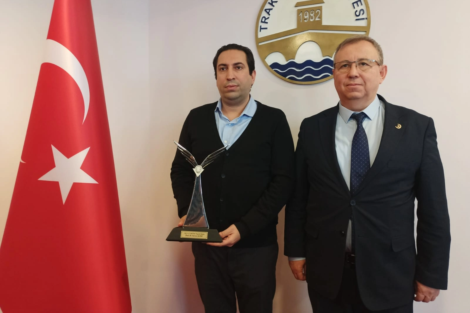 Ödülün, Cumhuriyetin 100’üncü yılına denk gelmesinden dolayı gururlu olduğunu belirten Altay; “Ama üniversitemiz için de bunun ilk olması benim için değerli. Hem yönetime, hem dekanıma, hem de rektörüme teşekkür ediyorum” dedi. Rektör Tabakoğlu da Altay’a teşekkür ederek, Trakya Üniversitesi logosu bulunan Muradiye çinisi hediye etti. Hediye takdiminin ardından toplantı sona erdi.