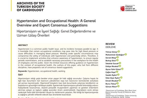 İleri yaşlarla beraber artan yaygın bir halk sağlığı sorunu olan hipertansiyonla çalışma hayatının etkisi ile daha sık karşılaşılmaktadır. İş yerlerinde hipertansiyona yönelik farkındalığı arttırıcı faaliyetlerde bulunmak, düzenli periyodik muayenelerin yapılmasını sağlamak ve gereken önlemlerin almak için Türk Kardiyoloji Derneği Hipertansiyon Çalışma Grubu’nun hayata geçirdiği Hipertansiyon ve İş Yeri Sağlığı Uzlaşı Raporu yayımlandı. Birçok farklı disiplinin katkı sağladığı rapora Trakya Üniversitesi Tıp Fakültesi Kardiyoloji Ana Bilim Dalı Başkanı ve Türk Kardiyoloji Derneği Hipertansiyon Yönetim Kurulu Üyesi Prof. Dr. Servet Altay ile Kardiyoloji Ana Bilim Dalı’ndan Doç. Dr. Muhammet Gürdoğan, Dr. Öğr. Üyesi Çağlar Kaya ve Adli Tıp Ana Bilim Dalı’ndan Prof. Dr. Gürcan Altun katkı sağladı.