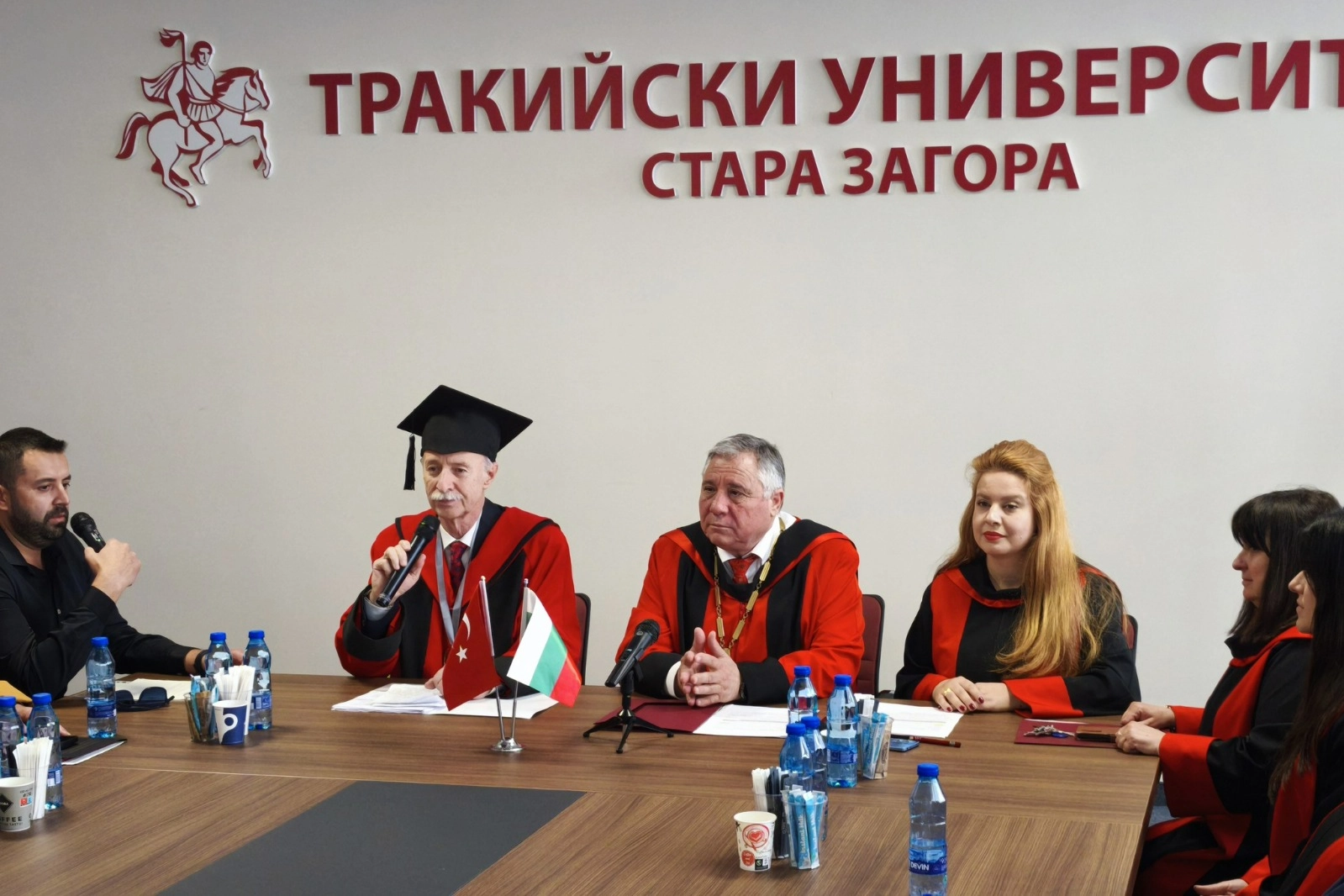 Tören, Türkiye ve Bulgaristan milli marşlarının çalınmasıyla başladı. Trakia Üniversitesi Rektörü Prof. Dr. Dobri Yarkov’un açılış konuşması ve senato kararını okumasının ardından Prof. Dr. Mustafa Hatipler’e Fahri Doktora diploması, madalya ve plaket takdim edildi.