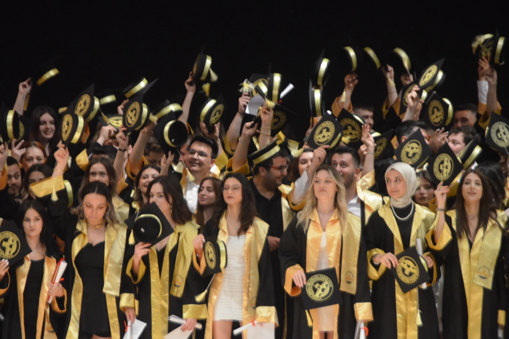 Törende konuşmaların ardından dereceye giren öğrencilere ödül takdimi gerçekleştirildi. Ardından sahneye davet edilen akademisyenler, öğrencileri tek tek tebrik ederek mezuniyet belgelerini takdim ettiler. Öğrencilerin meslek andı ile devam eden tören, mezuniyet keplerinin atılması ile sona erdi.