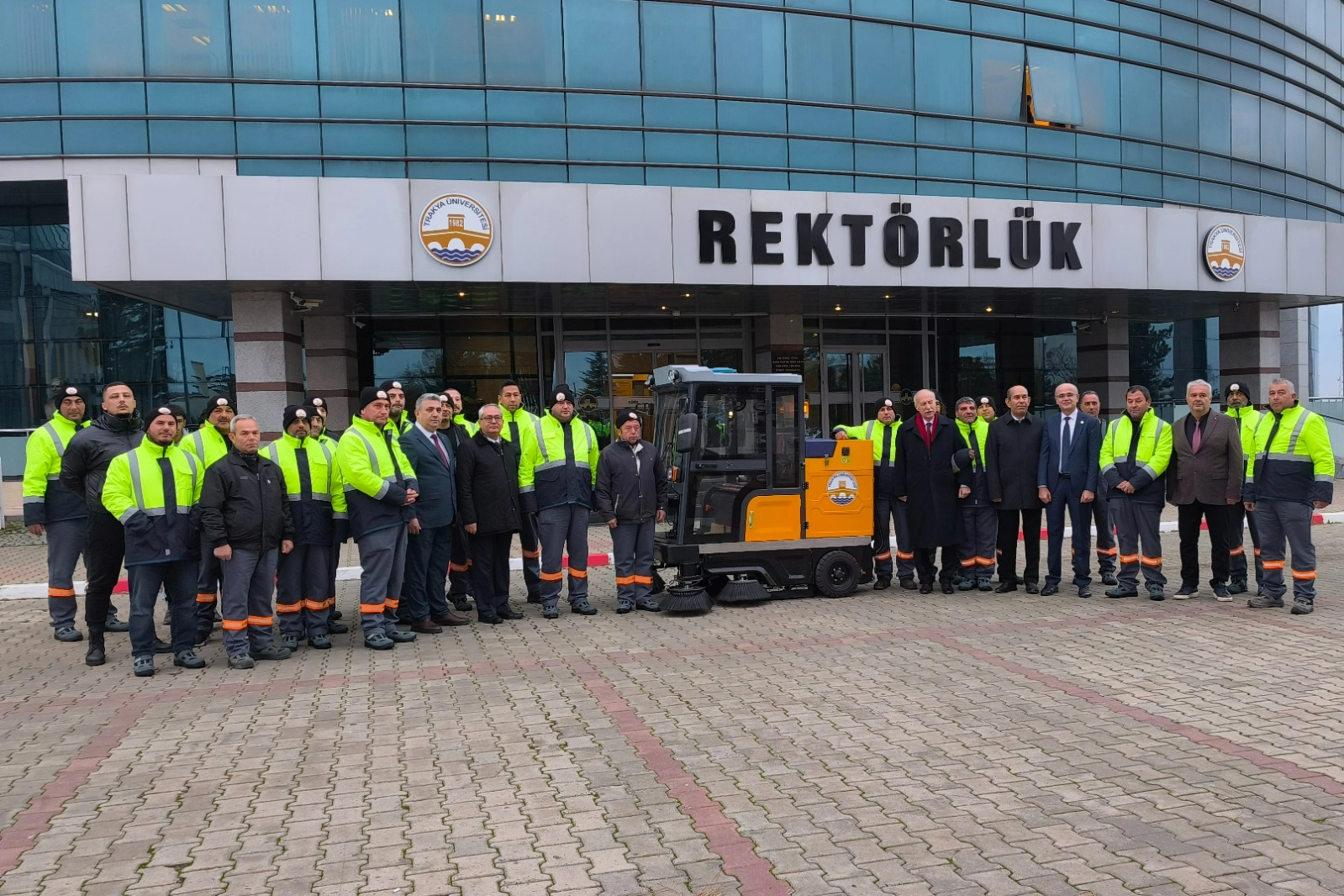 Üniversitenin farklı birimlerinde görev yapan hizmet ekiplerinin iş güvenliğine uygun kıyafetleri yenilenirken, temizlik filosuna yeni bir "Yol Süpürme Aracı" eklendi.