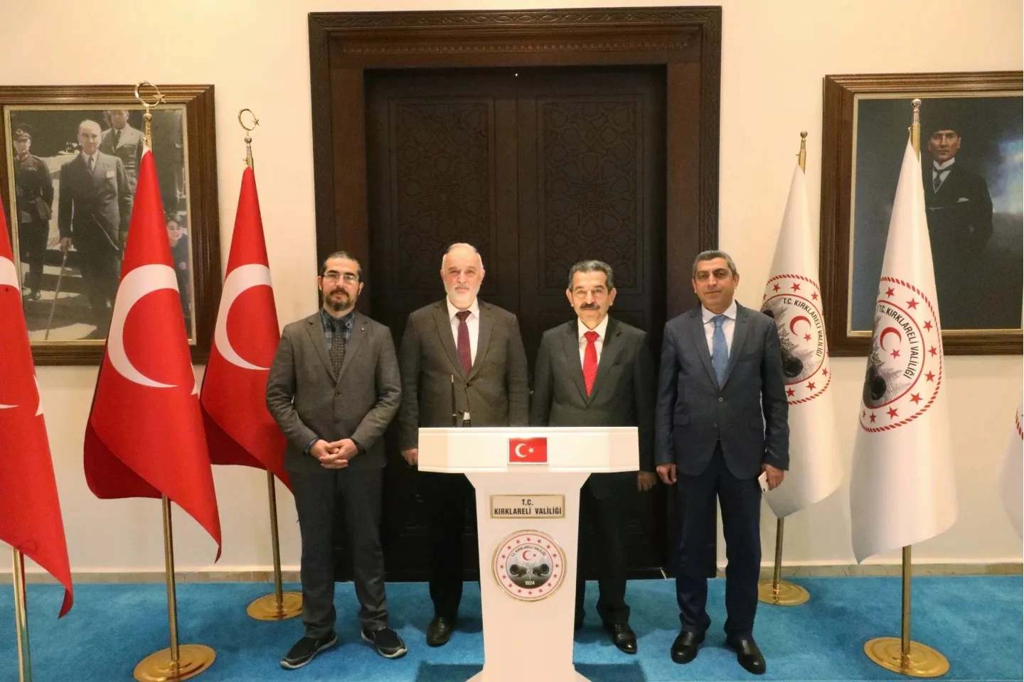 Kırklareli Valisi Birol Ekici, Türkiye İstatistik Kurumu (TÜİK) Başkan Yardımcısı İbrahim Demir ve TÜİK Edirne Bölge Müdürü Hasan Akdemir'i makamında kabul etti.