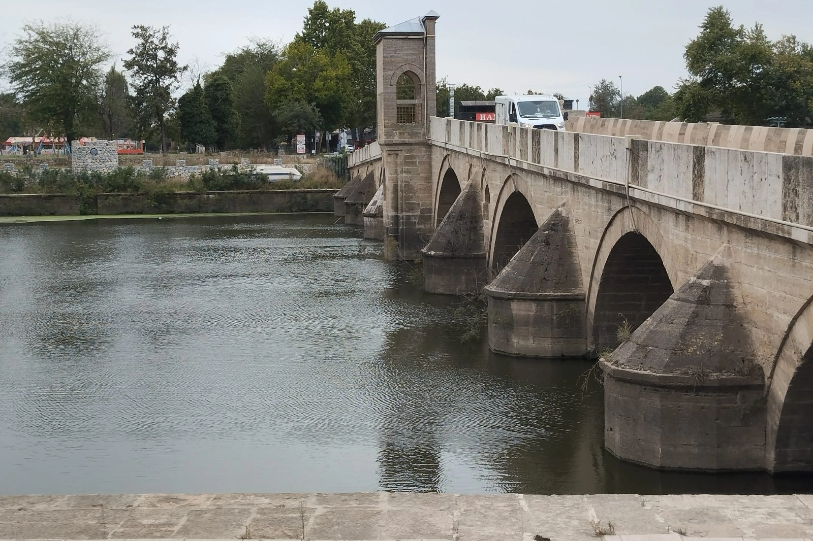 Tarihi Ekmekçizade Ahmet Paşa Köprüsü’nün çevresindeki su mercimekleri, su ile taşınırken; su seviyesinin artması da dikkat çekti.