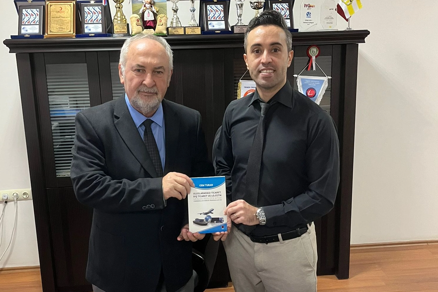 Turan, ziyarette "Uluslararası Ticaret, Dış Ticaret ve Lojistik Mesleki İngilizce" isimli kitabı hakkında bilgi verdi.