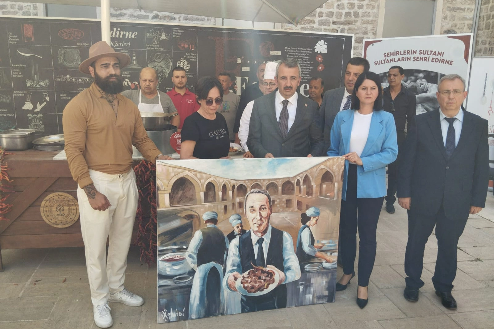 Türk Mutfağı Haftası etkinlikleri kapsamında, Edirne Devecihan Kültür Merkezi bahçesinde, Edirne Tava Ciğer pişirme ve tanıtım etkinliği düzenlendi. Etkinlikte Edirne’nin ve tava ciğerin tanıtımına sayısız katkıları bulunan, geçtiğimiz günlerde vefat eden Ciğerci Bahri Dinar’ın portresi, ressam Hatai tarafından resmedildi. Portrenin tamamlanması sonrası, etkinlikte bulunan Bahri Dinar’ın eşi Hediye Dinar’a Edirne Valisi Yunus Sezer tarafından hediye edildi.