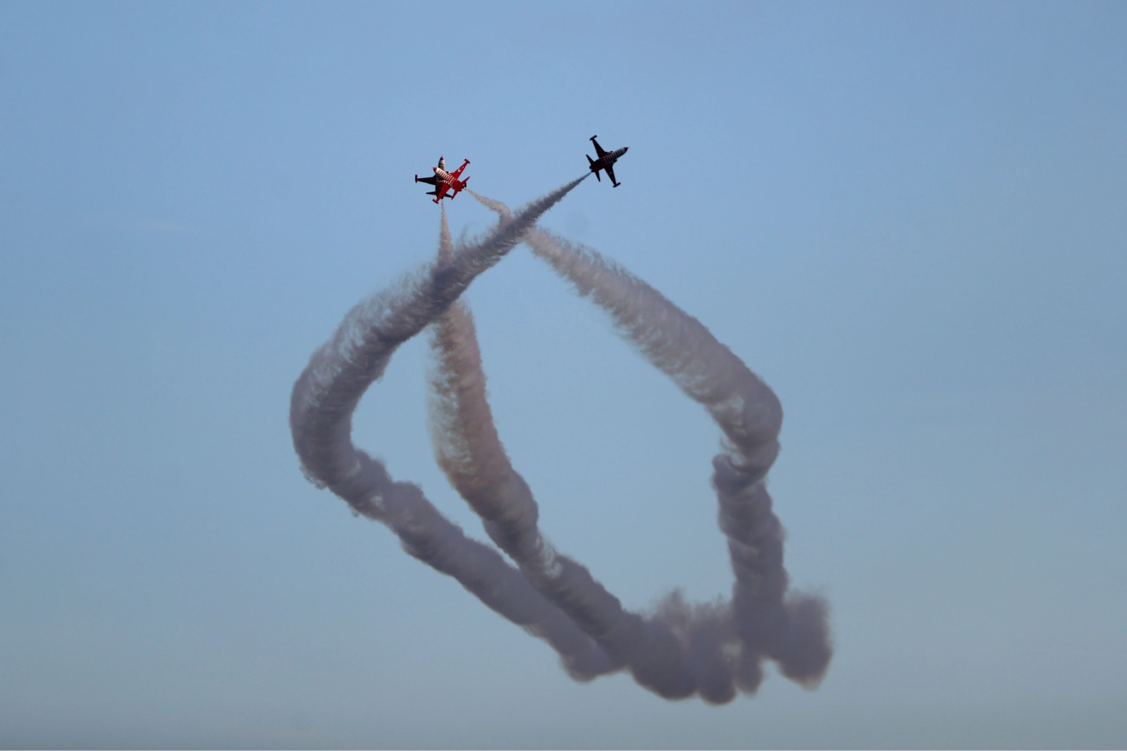 Türk Yıldızları gösterilerine gökyüzünde dumanla ay yıldız çizerek başladı. Ekip yarım saatlik uçuş boyunca akrobatik hareketler sergiledi.