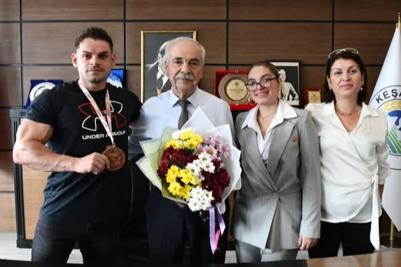 24-27 Eylül 2025 tarihleri arasında düzenlenen EXPO SPOR Türkiye Vücut Geliştirme – Fitness Şampiyonası ve Dünya Şampiyonası Milli Takım Seçmelerinde Türkiye 4.’sü olarak büyük bir başarı elde eden Keşanlı sporcu Hüseyin Gürhan Gür, ailesiyle birlikte Keşan Belediyesi’nde misafir edildi.