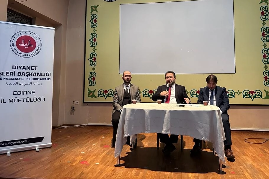 Edirne İl Müftülüğünden yapılan açıklamaya göre, Edirne Milli Eğitim Müdürlüğü ev sahipliğinde Akmercan Anadolu İmam Hatip Lisesinde düzenlenen programa, İl Müftü Yardımcıları Adem Özsoy ve Fatih Samet Okumuş olmak üzere vaizler, cami görevlileri ve Kur'an kursu görevlileri katıldı.