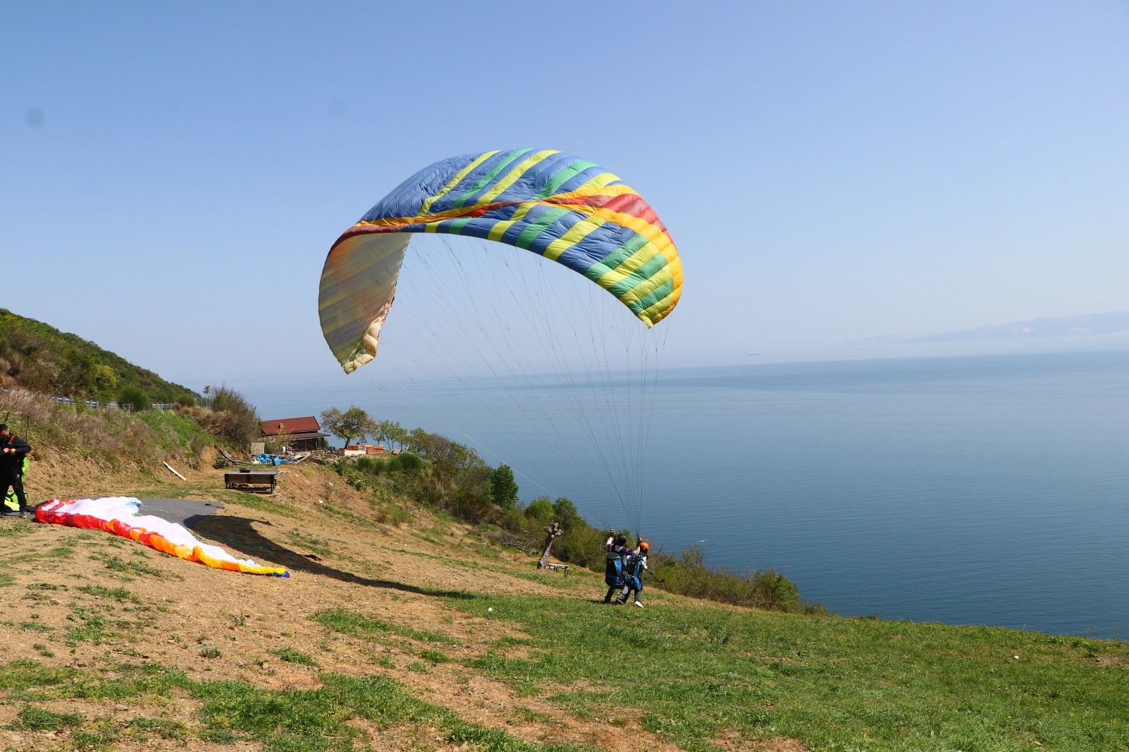 Ekstrem spor tutkunları, Marmara Denizi'nin mavisi ve Ganos Dağı eteklerindeki ormanların sunduğu eşsiz güzellikleri hem paraşüt uçuşu hem de ATV turlarıyla yakından görüyor.