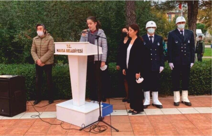 ilçemizde anma töreni 10 Kasım 2020 Salı sabahı 08:45'da Kaymakamlık Makamı ve Belediye Başkanlığı tarafından Hükümet Konağı önündeki Atatürk anıtına çelenklerin konulmasıyla başladı. Saat 09:05'te Belediye hoparlöründen verilen siren sesi ile birlikte saygı duruşunda bulunuldu. Saygı duruşu akabinde istiklal Marşı okunmasının ardından Melahat Kilimci Ortaokulu 7/B sınıfı öğrencisi Rüya Köle' nin “Bugün 10 Kasım” Şiirinin okunmasının ardından günün anlam ve önemini belirten konuşma Melahat Kilimci Ortaokulu Sosyal Bilgiler Öğretmeni inci Aksüt tarafından yapıldı. Melahat Kilimci Ortaokulu Sosyal Bilgiler Öğretmeni inci Aksüt yaptığı konuşmasında; “Sayın Kaymakamım, Sayın Belediye Başkanım Sayın protokol üyeleri, değerli misafirler, Bugün burada Atatürk'ün aramızdan ayrılışının 82.yıldönümü münasebetiyle toplanmış bulunuyoruz. Büyük Önder, fikir, ideal ve eserleriyle bağımsızlığımızdan tarihimize, dilimizden sanatımıza ve benliğimize kadar en gerçek fikirlerin ve en sıcak duyguların içinde, aramızda hep yaşayan bir önderdir. Atatürk`ün ölümsüzlüğe uğurlandığı günün yıldönümünde herkese düşen en büyük görev; "Atatürk`ü ve en büyük eseri Cumhuriyet`i anlamak, Cumhuriyet`in değerlerini her koşulda korumak, Atatürkçü düşünceyi benimsemek, Türkiye`yi aydınlık yarınlara taşımaktır" Dünyanın en seçkin ve en saygın lideri şöyle diyordu: ‘iki Mustafa Kemal vardır: Biri ben, et ve kemik, geçici Mustafa Kemal... ikinci Mustafa Kemal, onu "ben" kelimesiyle ifade edemem; o, ben değil, bizdir! O, memleketin her kösesinde yeni fikir, yeni hayat ve büyük ideal için uğrasan, aydın ve savaşçı bir topluluktur. Ben, onların rüyasını temsil ediyorum. Benim teşebbüslerim, onların özlemini çektikleri şeyleri tatmin içindir. O Mustafa Kemal sizsiniz, hepinizsiniz. Geçici olmayan, yaşaması ve başarılı olması gereken Mustafa Kemal odur!’ Mensubu olduğu Türk Milleti'ni sonsuz bir aşkla seven Mustafa Kemal Atatürk, milleti için her türlü zorluğa katlanmış ve kendini ona adamıştır. O'nun "Ben, gerektiği zaman en büyük hediyem olmak üzere, Türk milletine canımı vereceğim" sözü, milletini ne kadar çok sevdiğini göstermektedir. Bugün burada, bu daracık zamanda, Atatürk'ü anlatmanın imkânı yoktur elbette. Şurası bir gerçektir ki hakkında binlerce kitap yazılan; sayısız araştırmalara, makalelere konu olan Atatürk'ü ve onun muazzam kişiliğini bütün yönleriyle anlatamayız. Atatürk'ü anlatmak zor ve uzmanlık isteyen bir iştir; çünkü o yeryüzüne bir insan olarak gelmiş, içine birçok şeyi sığdırdığı kısa yaşamının en son anına kadar memleketine hizmet etmiş; “Benden sonra beni benimsemek isteyenler bu temel mihver üzerinde akıl ve ilmin rehberliğini kabul ederlerse, manevi mirasçılarım olurlar” diyerek aramızdan ayrılmış ve kurduğu cumhuriyete sahip çıkılmasını ve bunun ise çok çalışılarak bilimde ve teknolojide çok ileri bir seviyeye çıkılması suretiyle gerçekleşeceğini ifade etmiştir. işte, bütün 10 Kasım'lar bu yüzden ulusça içinde bulunduğumuz mateme rağmen; Atatürk'ün fikirlerinin en iyi bir şekilde anlaşılarak tatbik edileceği günler olarak kalmalıdır. 10 Kasım'larda bizler onu her seferinden daha da iyi anlayarak, düşüncelerinden en üst düzeyde istifade ederek, ilmin ve fennin ışığında ülkemiz ve ulusumuz için daha iyi neler yapabiliriz sorusuna cevaplar aramalı ve de vakit geçirmeden gerekenler ne ise onu yapmalıyız. Aziz Atam! Sen ebedi mekânında rahat uyu! Bizler emanet ettiğin Türkiye Cumhuriyeti'ne, Türkiye Cumhuriyeti Devleti'ne, milletimizin bölünmez bütünlüğüne, şehit kanlarıyla sulanmış aziz vatanımızın her karış toprağına, hürriyetimize, istiklalimize, bayrağımıza ve ezanımıza her zaman olduğu gibi gönülden sahip çıkacak ve ecdadımıza layık bir millet olmaya devam edeceğiz. Ruhun şad olsun. Saygılarımla.”dedi. BatıEkspres Gazetesi olarak Büyük Önder Atatürk'ün aramızdan ayrılışının 82'inci Yıldönümünde O'nu bir kez daha özlemle, saygıyla, sevgiyle ve rahmetle anıyoruz.