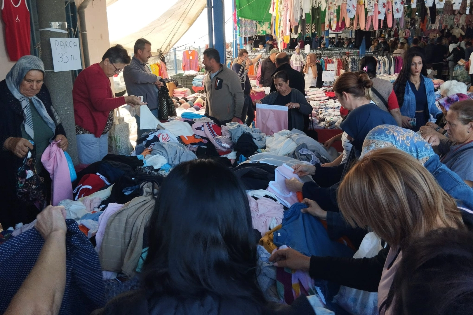 Alışveriş için Edirne’ye gelen Bulgar turistlerin ve Edirneli vatandaşların Cuma günleri uğrak yerlerinden olan Ulus Pazarındaki esnafın kalabalıktan hayli memnun olduğu gözlemlendi. Kış aylarının da yaklaşmasıyla tezgahların çoğunda kışlık giysilerin yerini almaya başladığını söyleyen Ulus Pazarı Esnaf Kooperatifi Başkanı Yüksel Barış Atkoşan; “Pazarımızda bugün yine yoğunluk var. Havanın da güzel olmasından kaynaklı özellikle Bulgar müşterilerin ilgisi oldukça yoğun. Sabahın erken saatlerinden itibaren yine Bulgar ve yerli müşterilerimizle doldu pazarımız” şeklinde konuştu.