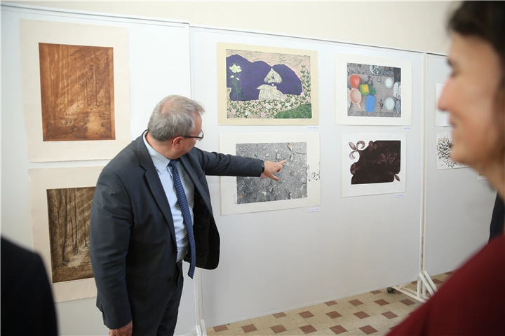 Kuzey Makedonya Üsküp Kiril ve Metodi Üniversitesi Güzel Sanatlar Fakültesinden Prof. Dr. Slavica Janaslieva ve Prof. Dr. Fehim Huskovic, Sırbistan Niş Üniversitesi Güzel Sanatlar Fakültesinden Prof. Dr. Katarina Djordjevic, Bosna Hersek, Saraybosna Üniversitesi Güzel Sanatlar Fakültesinden Doç. Dr. Danis Fejzic ve Trakya Üniversitesi Güzel Sanatlar Fakültesinden Prof. Melihat Tüzün ve Prof. Ayhan Çetin koordinatörlüğünde yapılan dört ülkenin dört üniversitesinden yirmişer öğrencinin desen, baskıresim, grafik tasarım, kolaj, fotoğraf vb tekniklerle yaptığı farklı konulu eserlerin yer aldığı ‘Dört Ülke Dört Üniversite Uluslararası Plastik Sanatlar Sergisi” Mimar Kemaleddin Sergi Salonu’nda açıldı.