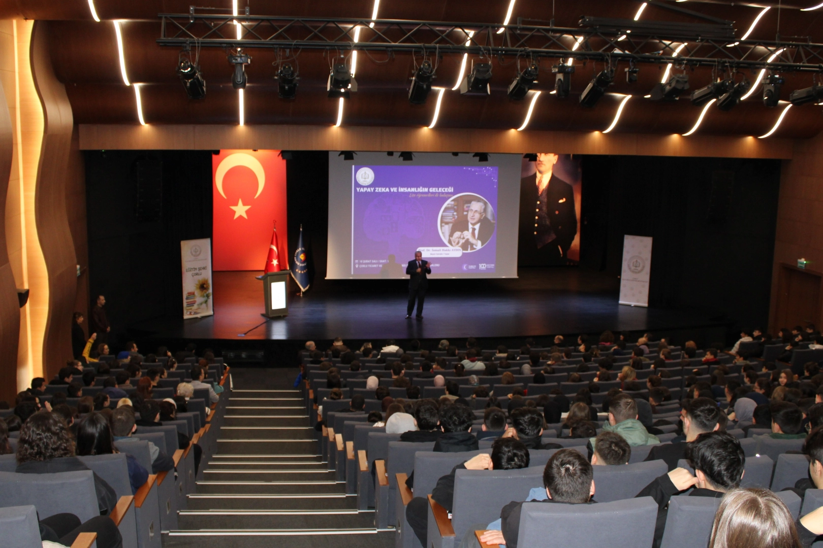 Çorlu Ticaret ve Sanayi Odası Enis Sülün Konferans Salonunda gerçekleşen etkinlikte Prof. Dr. Aydın, salon dolduran öğrencilerle "Yapay Zeka ve İnsanlığın Geleceği" konulu bir söyleşi gerçekleştirdi. Entelektüel kişiliğiyle tıp, edebiyat, felsefe, din, tarih, teknoloji gibi hemen her konuya değinen Prof. Dr. Aydın, programda öğrencilerimizin sorularına da yanıt verdi. Özellikle beyin ve başarı ilişkisine vurgu yapan Prof. Dr. Aydın ruhumuzun, kimliğimizin, şahsiyetimizin, onurumuzun, haysiyetimizin ve biz olmamızın yegane ve nadide kumaşı olan beynimizi yeterince kullanamadığımızı ifade ederek, mutlaka büyük bir gayretle ve konfor alanlarımızdan çıkarak bilim üretmenin önemine vurgu yaptı. Kısacası beynimizin sınırlarını keşfedecek tek gücün yine kendi içimizde olduğuna değindi. Programın sonunda Çorlu İlçe Milli Eğitim Müdürü Hüseyin Erdoğan tarafından Prof. Dr. İsmail Hakkı Aydın'a günün anısına hediye takdim edildi.