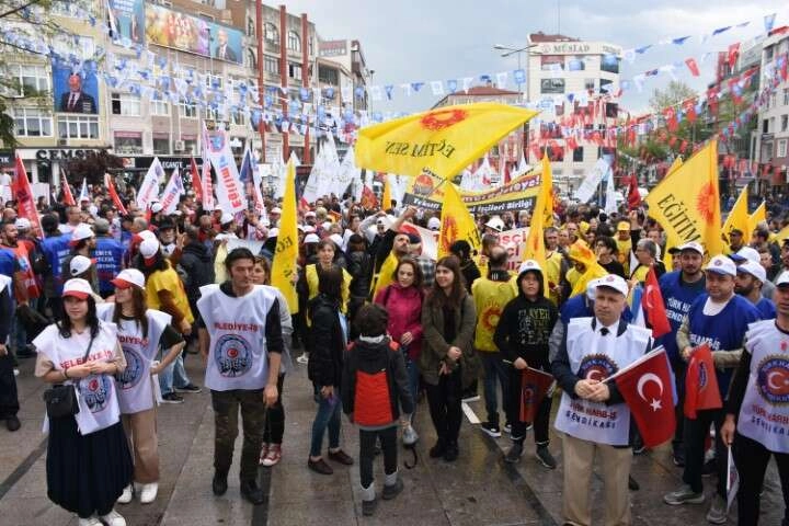Herkese iş ve insanca yaşanacak ücret taleplerini sürekli yinelediklerini ifade eden Er, "Kadınlara hak ettiği değerin verilmesini istiyoruz. Kadınların her alanda eşit haklara ve temsile sahip olması gerekiyor. Laik bilimsel ve demokratik bir eğitim istiyoruz. Barış ve çağdaş demokratik bir ortamda yaşamak istiyoruz. Biliyoruz ki dünyayı her gün yeniden kuran, üreten bizleriz ve yöneten de biz olacağız ve birleşe birleşe kazanacağız." dedi.