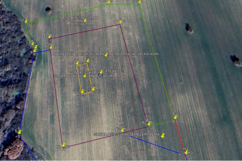 Çiftlikköy-1 kuyusu için 266 Ada, 28 Parsel, parsel sorgulamaya göre tarla vasfında olduğu, 1/100.000 çevre düzeni planına göre sanayi, 1/25.000 Ölçekli Çevre Düzeni Planlarına göre de tarım alanları içerisinde kaldığı belirtildi. Çiftlikköy-1 sondaj alanına en yakın yerleşim biriminin yaklaşık bin 250 metre mesafede bulunan eski köy yolu üzerindeki konut olduğu açıklanırken; Uzunköprü Belediye mezbahasına bin metre, Ali Tunceli Sokak’a ise bin 960 metre uzaklıkta olduğuna yer verildi.