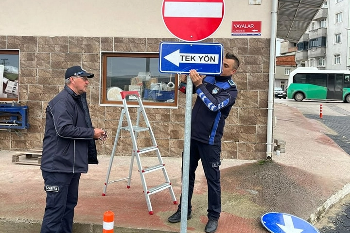 Uzunköprü Belediyesi Zabıta Müdürlüğü ekipleri, Yayalar Sokak ile Köy Minibüs Terminali yolu üzerinde trafik güvenliğini artırmak amacıyla trafik tabelası çalışması yaptı.