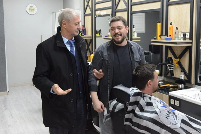 Çınarlı Mahallesi'nde esnafı ziyaret eden Uzunlar, vatandaşlarla sohbet edip isteklerini dinledi.