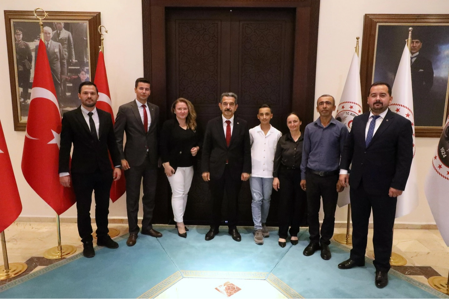 Kırklareli Valisi Birol Ekici, Kofçaz İlçesinden LGS sınavında başarı göstererek ilk defa Kırklareli Fen Lisesini kazanan Kofçaz Atatürk Ortaokulu öğrencisi Can Altuntaş, ailesi ve öğretmenlerini Valilik Makamında kabul etti.
