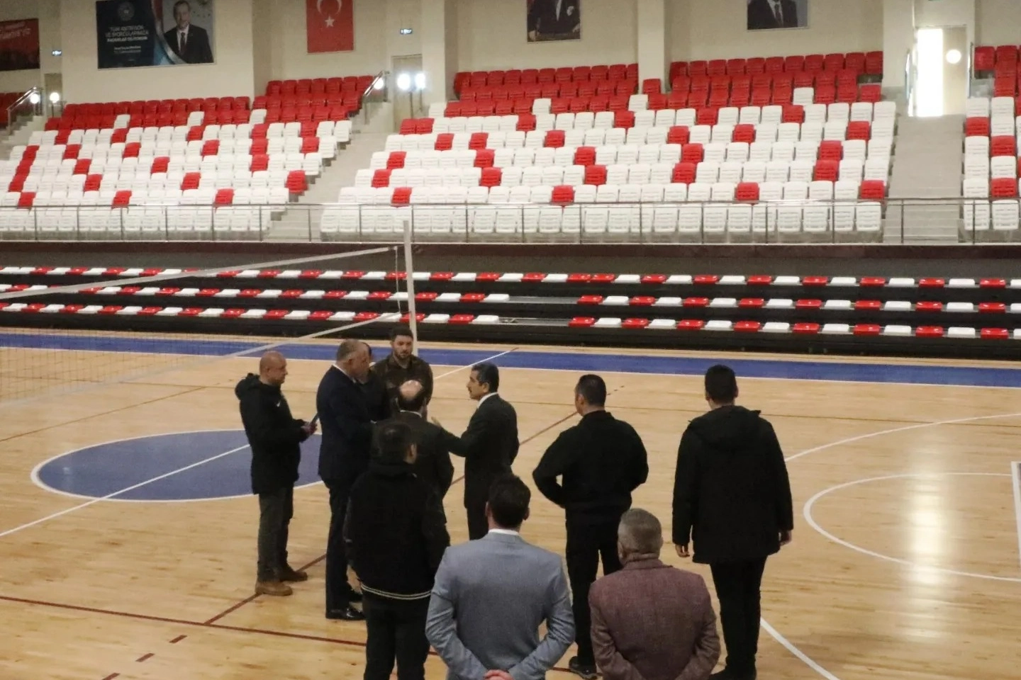 Ekici, yeni kapalı spor salonunu gezerek Gençlik ve Spor Müdürü Emrah Yüksel Babuşcu'dan bilgi aldı.