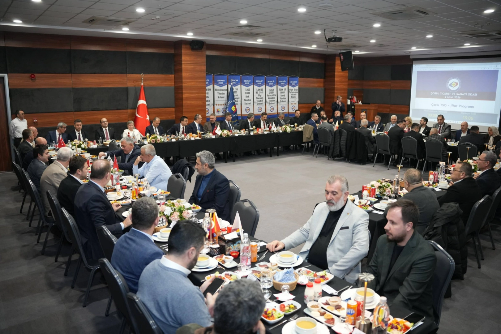 Vali Recep Soytürk, Tekirdağ milletvekilleri, kaymakamlar, oda başkanları ve sanayicilerle birlikte iftar sofrasında buluştu. İftarın düzenlenmesinde emeği geçen İzzet Volkan ve Erdim Noyan’a teşekkür eden Vali Soytürk, programa katılanlara hayırlı Ramazanlar temennisinde bulundu.
