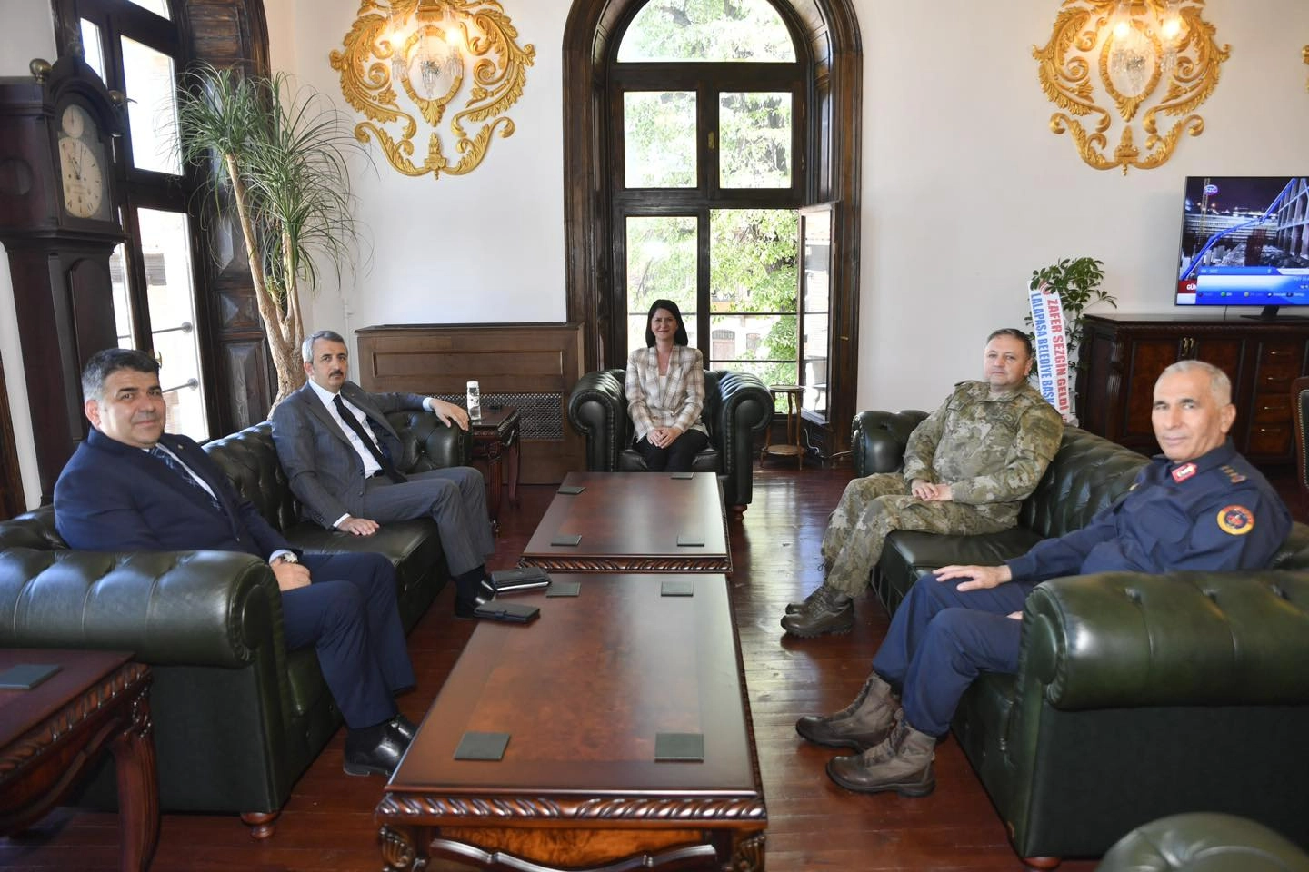 Edirne Valisi Yunus Sezer’in Edirne Belediye Başkanı Av. Filiz Gencan Akın’a yaptığı hayırlı olsun ziyaretinde Garnizon Komutanı Tuğgeneral Berat Acar, Edirne İl Jandarma Komutanı Jandarma Albay Hacı Ali Büber ve Edirne İl Emniyet Müdürü Onur Karaburun da bulundu. Başkan Akın ziyaretten duyduğu memnuniyeti dile getirdi.