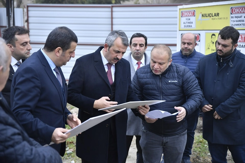 İnşaat alanını gezen Vali Sezer, Kültür ve Turizm Müdürü Kemal Soytürk ve proje yetkililerinden bilgi aldı.