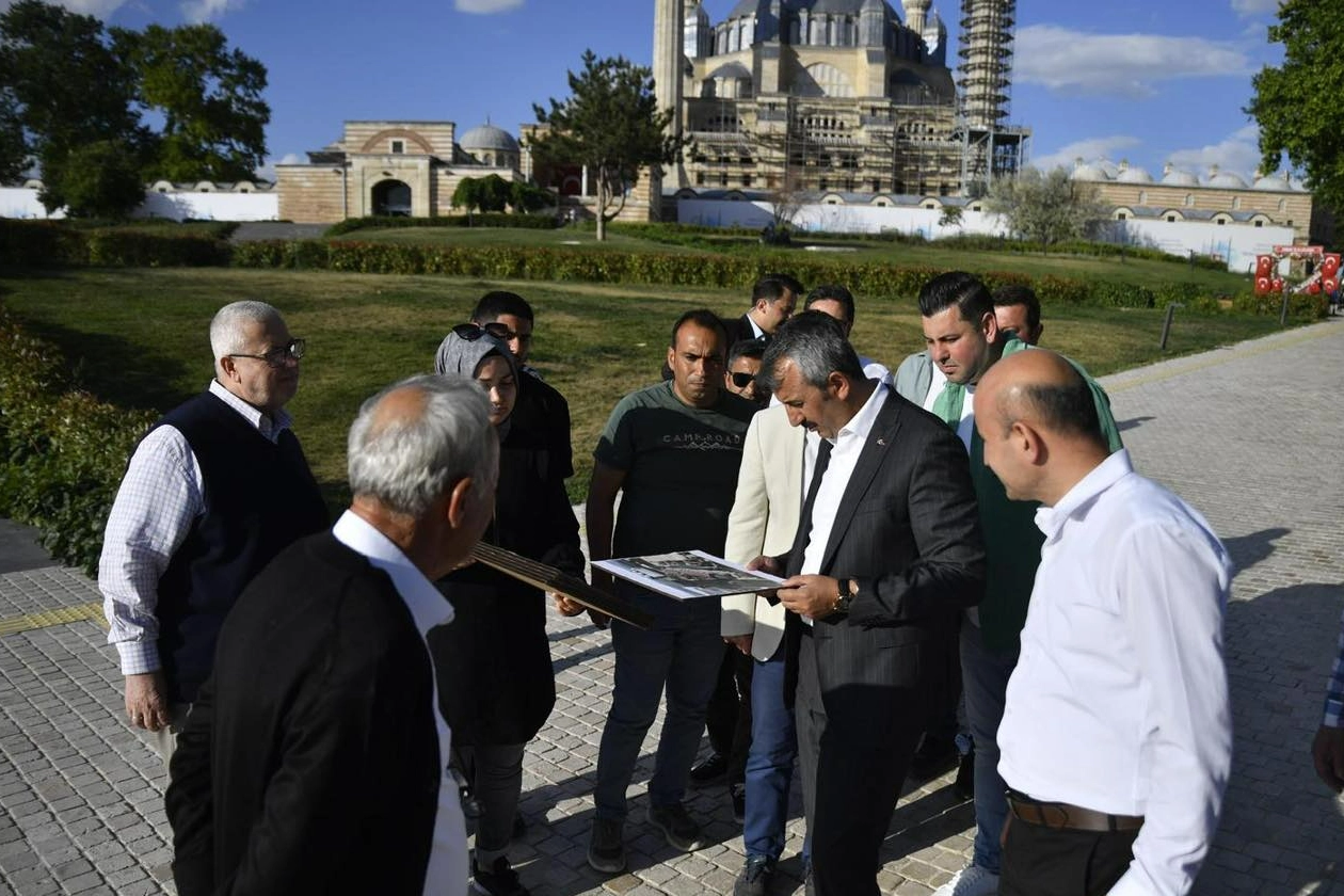 Edirne Valisi Yunus Sezer Edirne Valisi Yunus Sezer, Selimiye Meydanı'ndaki 15. yüzyıl eserlerinden Havlucular Hanı ve Mezit Bey Hamamının devam eden restorasyon çalışmaları hakkında bilgi aldı.