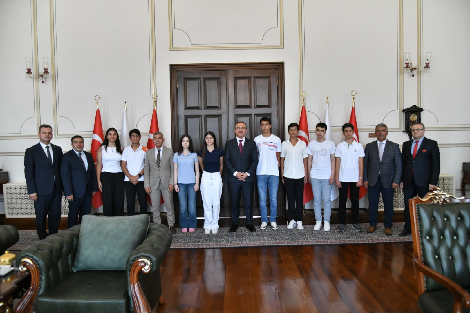 Vali Soytürk, öğrencilere hitaben yaptığı konuşmada, “Hepinizi gönülden tebrik ediyorum. Elde ettiğiniz bu büyük başarı ile ailelerinizi, öğretmenlerinizi, okullarınızı ve ilimizi gururlandırdınız. Bu başarıyı elde etmeniz, azim ve özverinizin bir göstergesi. Aynı zamanda sizleri destekleyen aileleriniz ve öğretmenlerinize de teşekkür ediyorum. Türkiye birinciliğini paylaşmanız, geleceğe dair umutlarımızı daha da güçlendiriyor. Sizler bu ülkenin yarınlarında önemli sorumluluklar üstleneceksiniz. Nerede olursanız olun, köklerinizi unutmayın. Hayat boyu başarılar diliyorum” ifadelerini kullandı.
