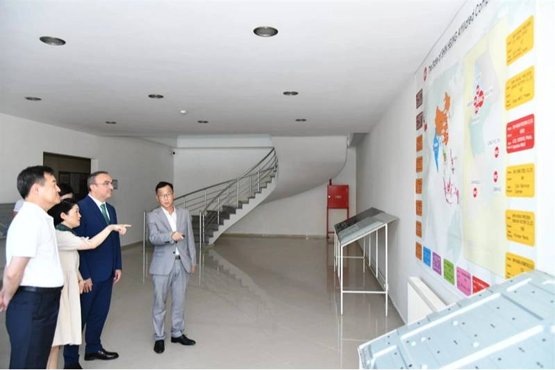 Firma CEO’su Yoon Seuk Douk tarafından karşılanan Vali Soytürk, ardından fabrika toplantı salonunda fabrika hakkında bilgi aldı.