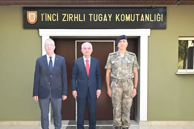 Kırklareli Valisi Uğur Turan, Babaeski Kaymakamı Tamer Orhan ile birlikte Babaeski 1’inci Zırhlı Tugay Komutanı Tuğgeneral Sabri Gökhan Karamürsel’e iade-i ziyarette bulundu.