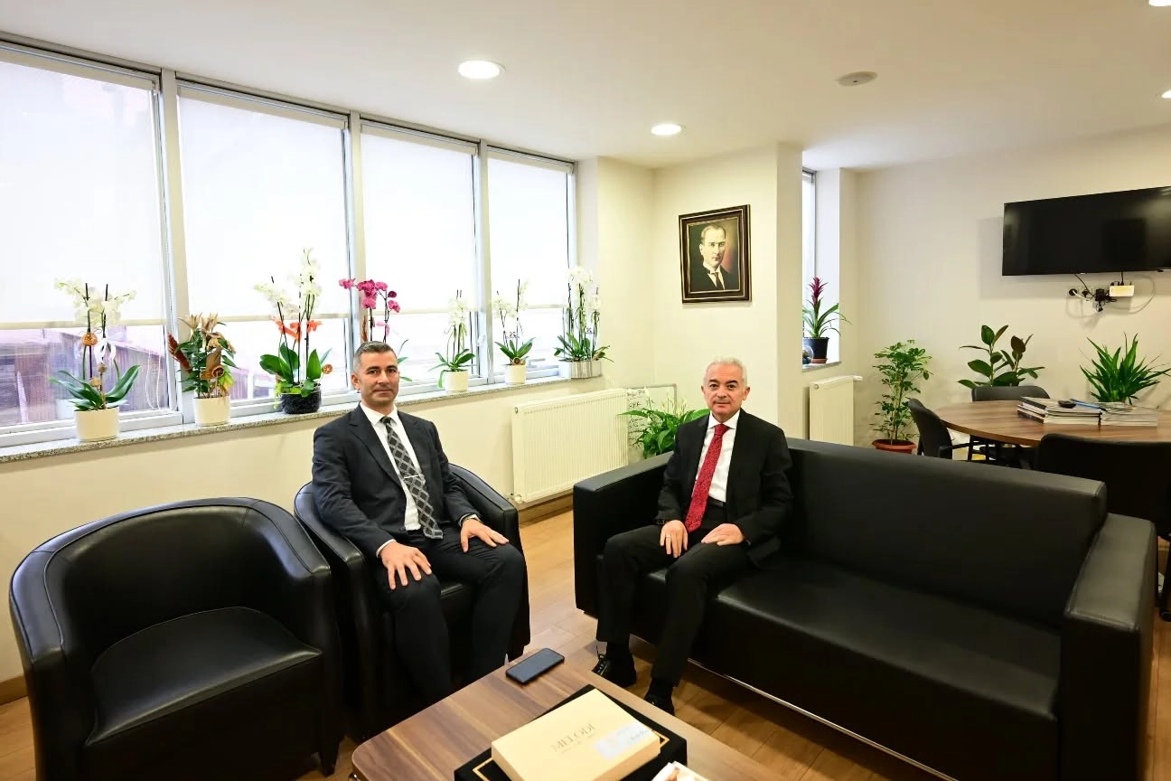 Kırklareli Valisi Uğur Turan, Vakıfbank Kırklareli Şube Müdürü Ahmet Harun Değirmenci’yi makamında ziyaret etti.