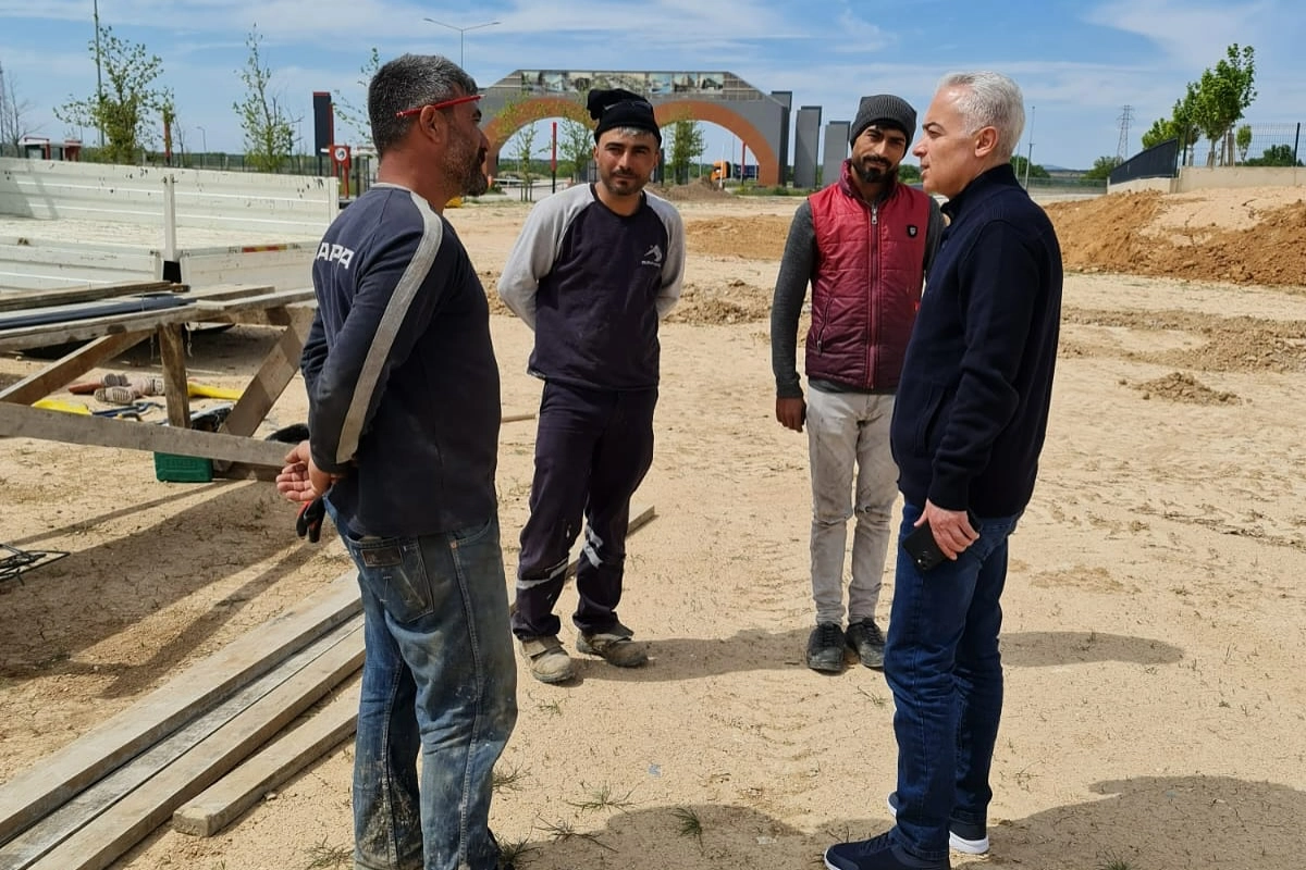 OSB’de planlanan sosyal yaşam projeleri kapsamında yapımı sürdürülen tenis kortu, futbol ve basketbol sahası inşaat alanlarını gezen Vali Turan, yetkililerden projelerin ilerleyişi hakkında bilgi aldı. Spor tesislerinin, bölgede çalışan işçilerin ve yakın çevredeki vatandaşların sosyal ve sportif ihtiyaçlarını karşılamaya yönelik olarak planlandığı belirtildi.