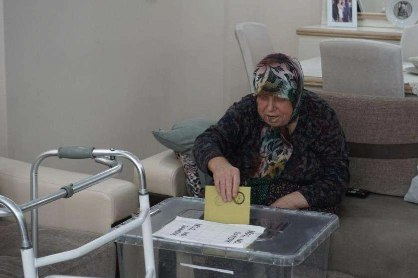 İl Seçim Kurulu görevlileri, Şüküpaşa Mahallesi'nde ikamet eden ve rahatsızlığı nedeniyle oy kullanmaya gidemeyen 82 yaşındaki Hacer Arda'nın, evine seyyar sandık götürdü.